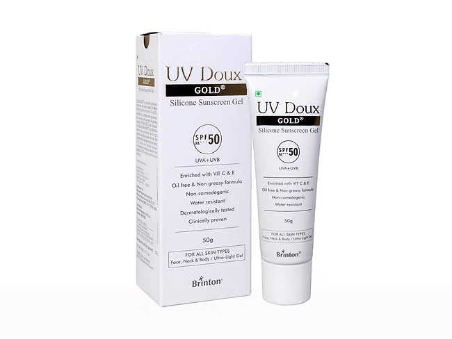 UV Doux Gold Silicone Sunscreen Gel SPF 50 PA+++ 50Gm